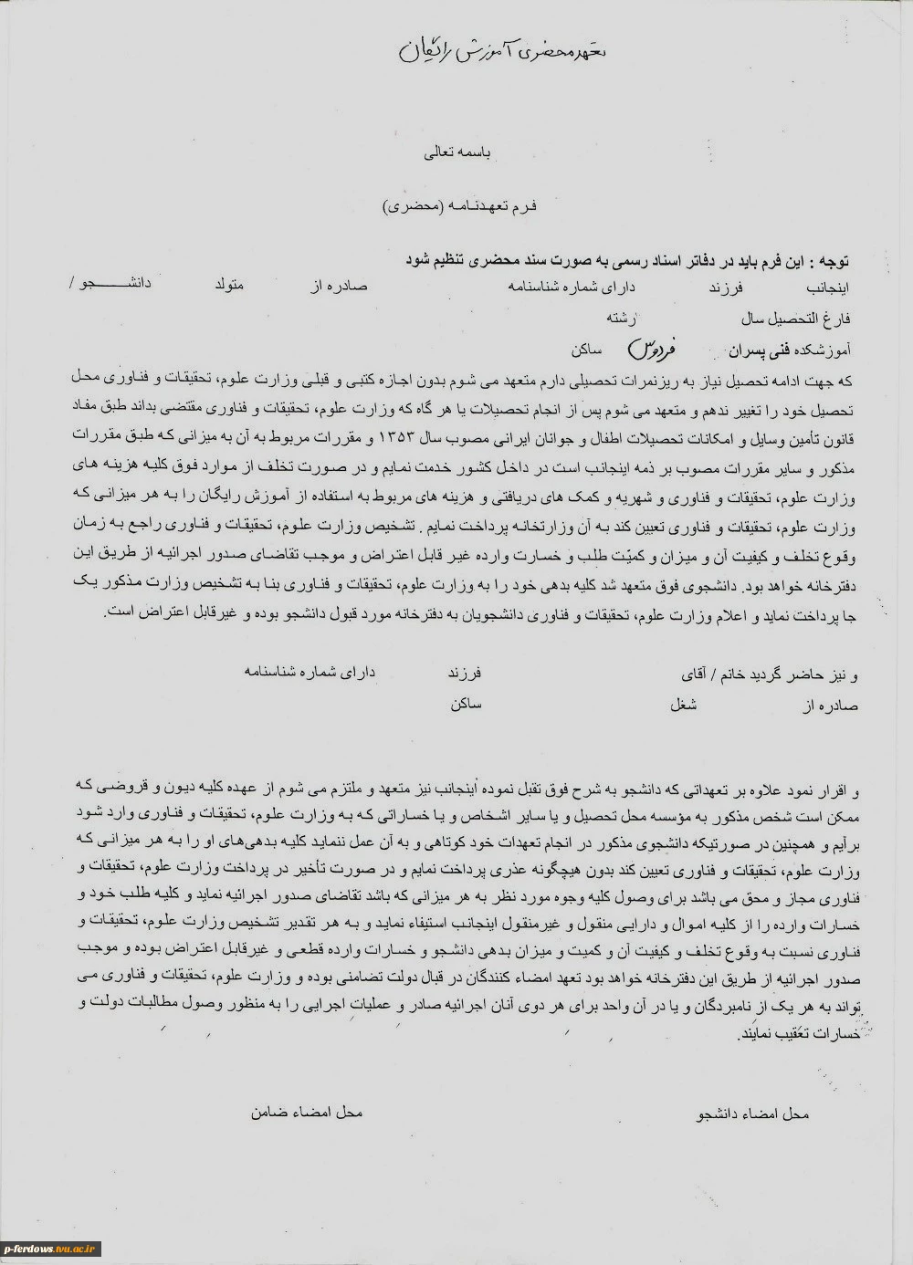 امتیاز دهید : فارغ التحصیلان جهت ادامه تحصیل در مقطع بالاتر باید فرم ذیل را در دفتر خانه تکمیل نمایند و به دانشگاه تحویل دهند. دوشنبه 12 خرداد 1399 ساعت 10:13
