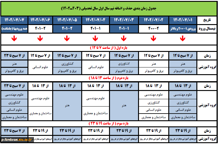 جدول زمانبندی حذف و اضافه نیمسال اول 1403-1402 3