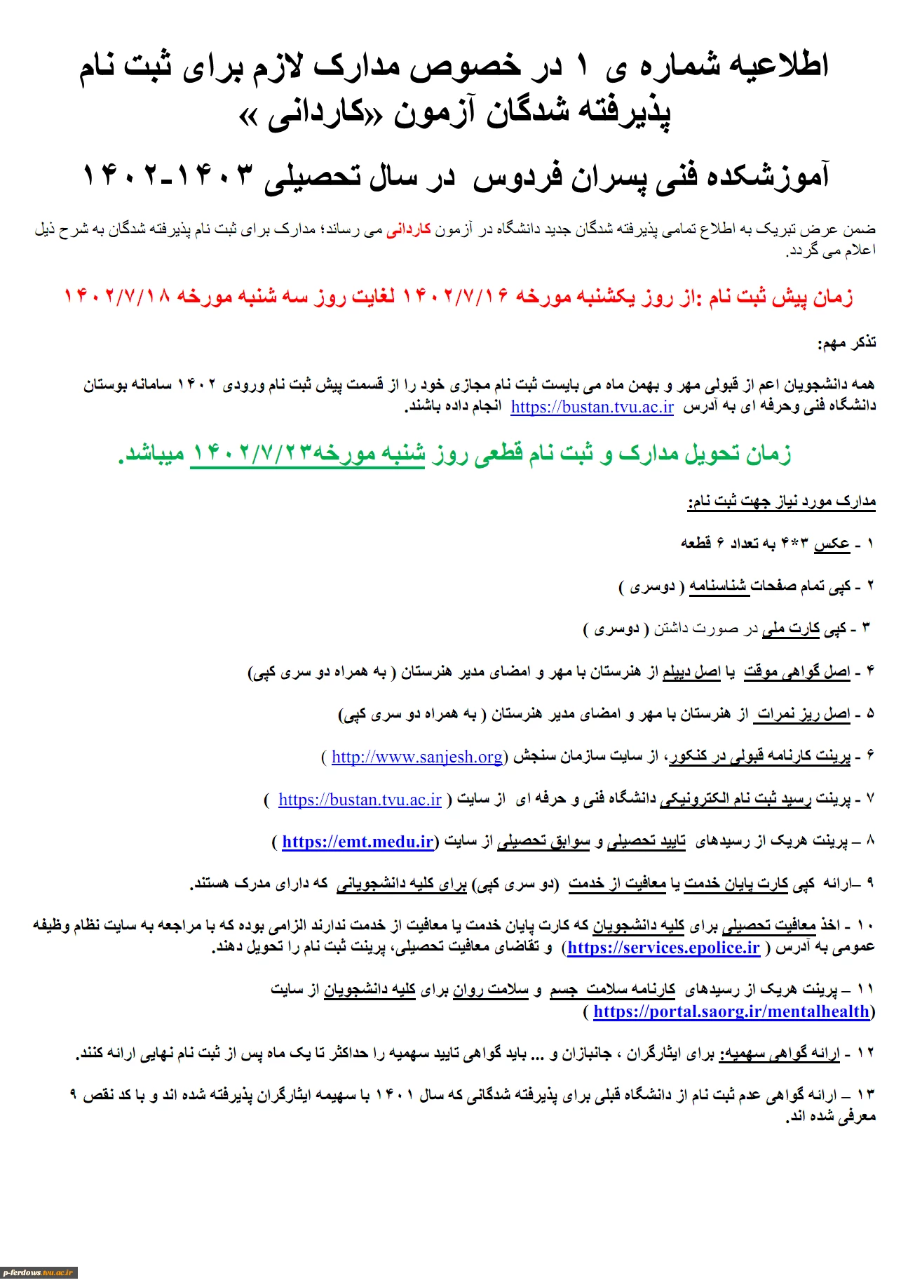اطلاعیه راهنمایی ثبت نام پذیرفته شدگان کاردانی 1402